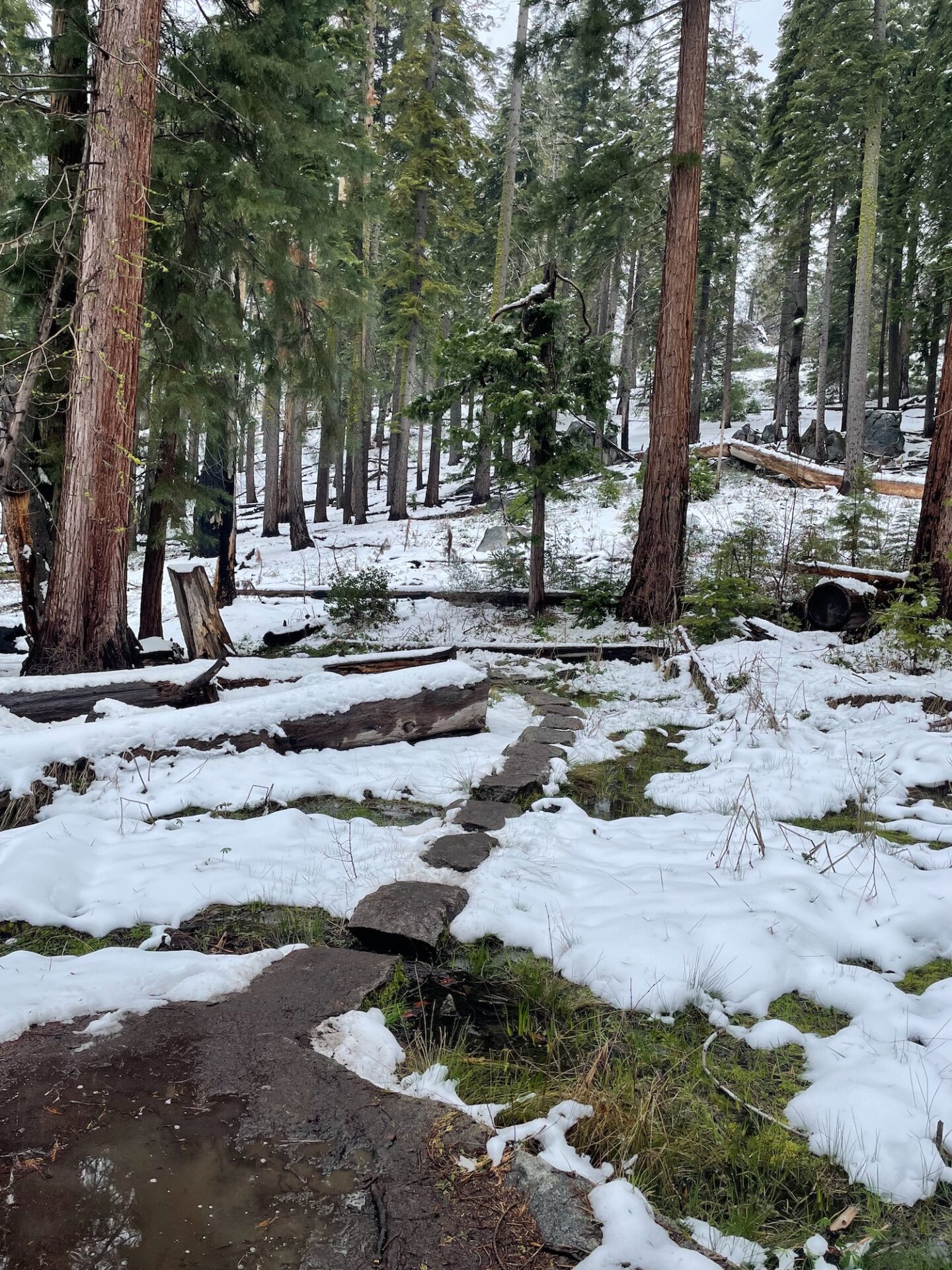 On Sunday morning I put on my jeans and a hoodie instead of a t-shirt and shorts, because I’ve decided to drive north to Yosemite. Where I was still doubting about it the other day, it’s suddenly clear for me what the direction will be from here. It’s about a five hour drive to there and I take it easy. About half way I fill up my car at a gas station and get some cash from an ATM. Then I see a Barnes & Noble around the corner and stop there as well. My sister calls and we catch up for a while. She tells that I’m not allowed to buy more books, I laugh and go inside anyway, but can’t find a book that calls out to me today. I make one more stop at Mc Donalds for lunch and arrive in Yosemite in the afternoon. There is snow here, quite a different scene from Los Angeles this morning. I get a national parks pass (80 dollars and you can go to all national parks for a year, great deal) and drive to Mariposa Grove, close to the entrance. There is a trail I know from previous years which leads to a collection of Sequoia trees. The hike is a bit challenging because of the slippery snow, but I arrive without problems at the top of the hill and enjoy the sight of the massive trees. They never fail to impress.